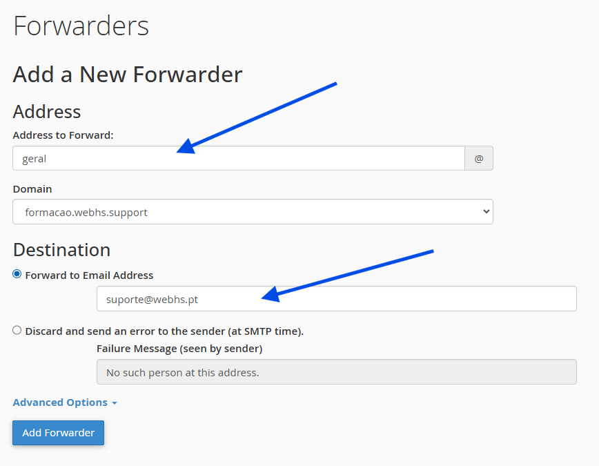 Forward to Email Address: Endereço de email de destino