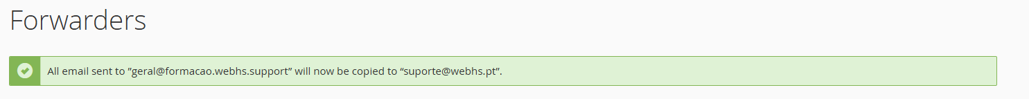 A partir deste momento, todos os emails recebidos serão redireccionados automaticamente.