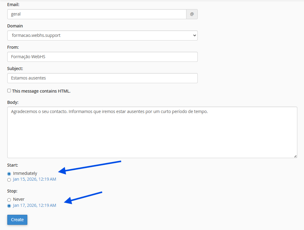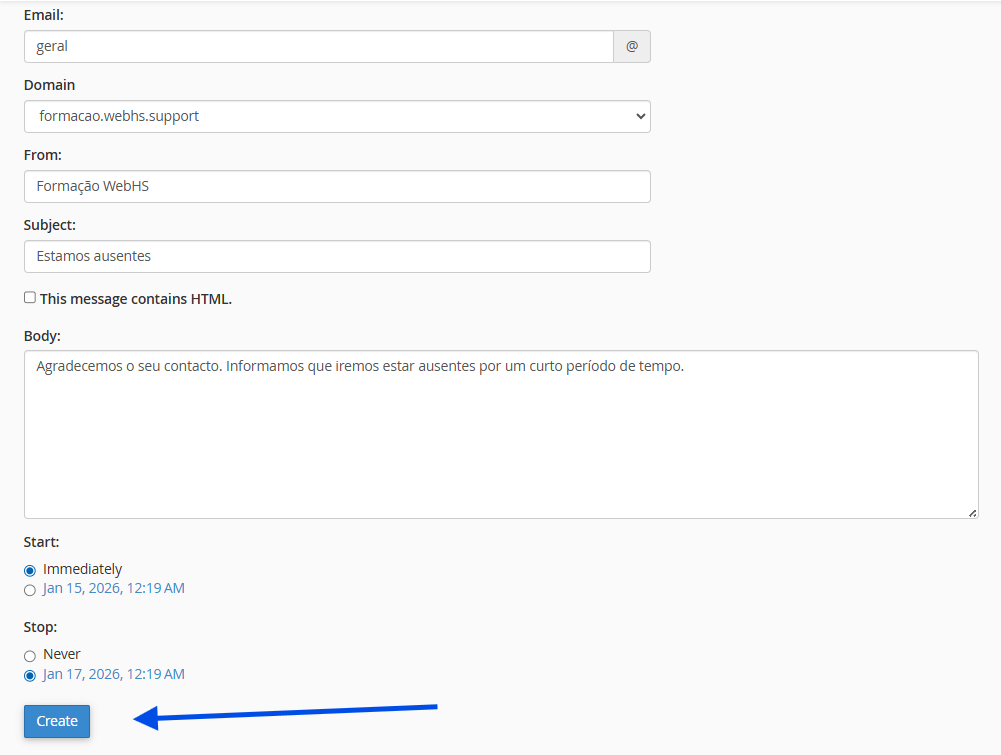 A resposta automática fica activa de imediato.
